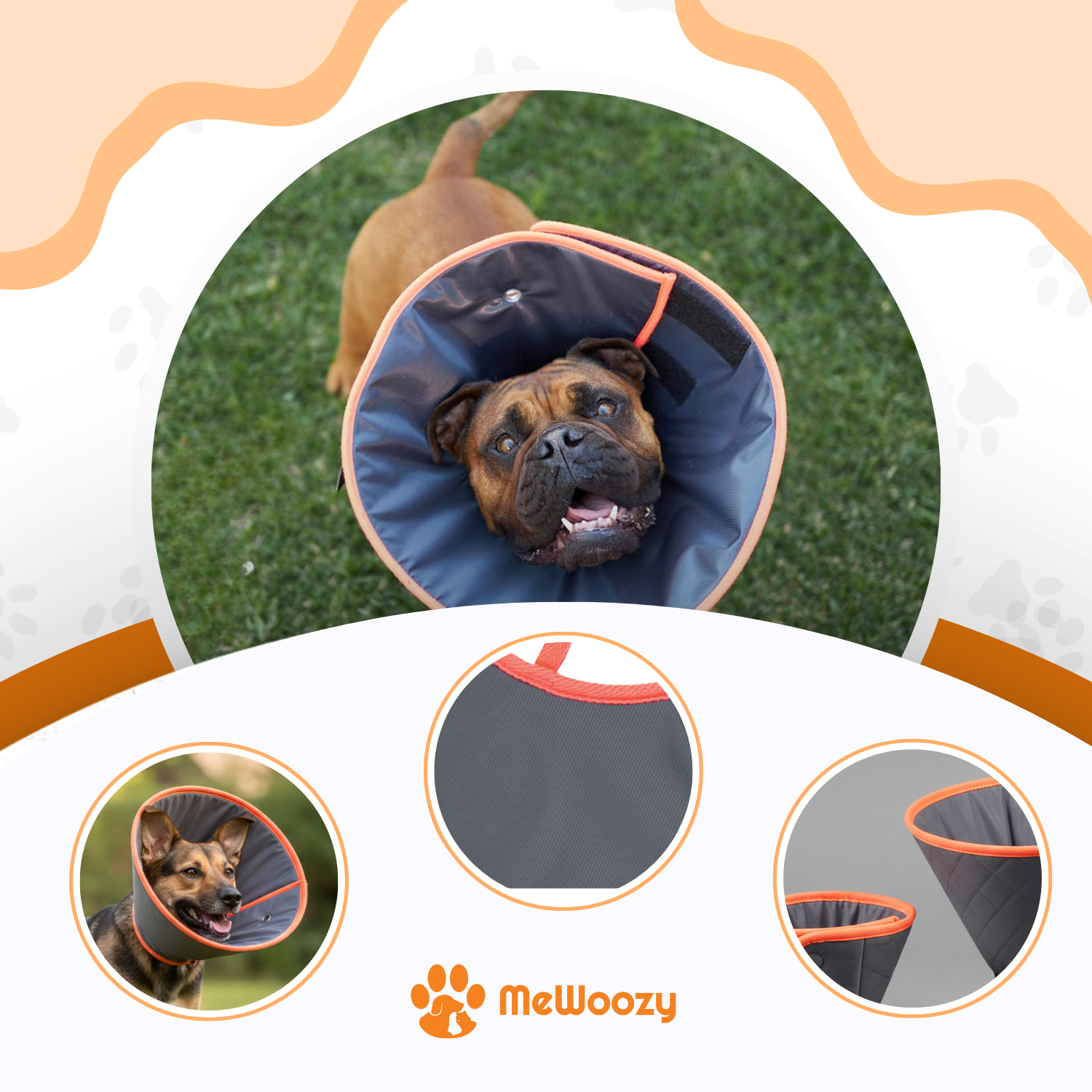 Na de operatie kreeg mijn hond een harde plastic kraag mee die overal tegenaan stootte. Hij kon nauwelijks liggen en keek me zielig aan. Ik wilde iets zachters dat hem toch beschermde tegen likken aan de hechtingen.