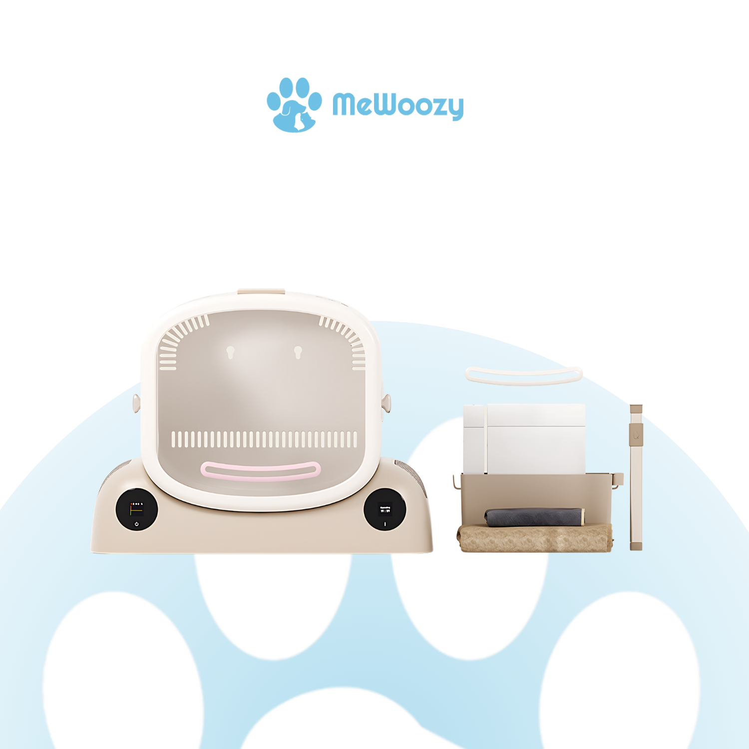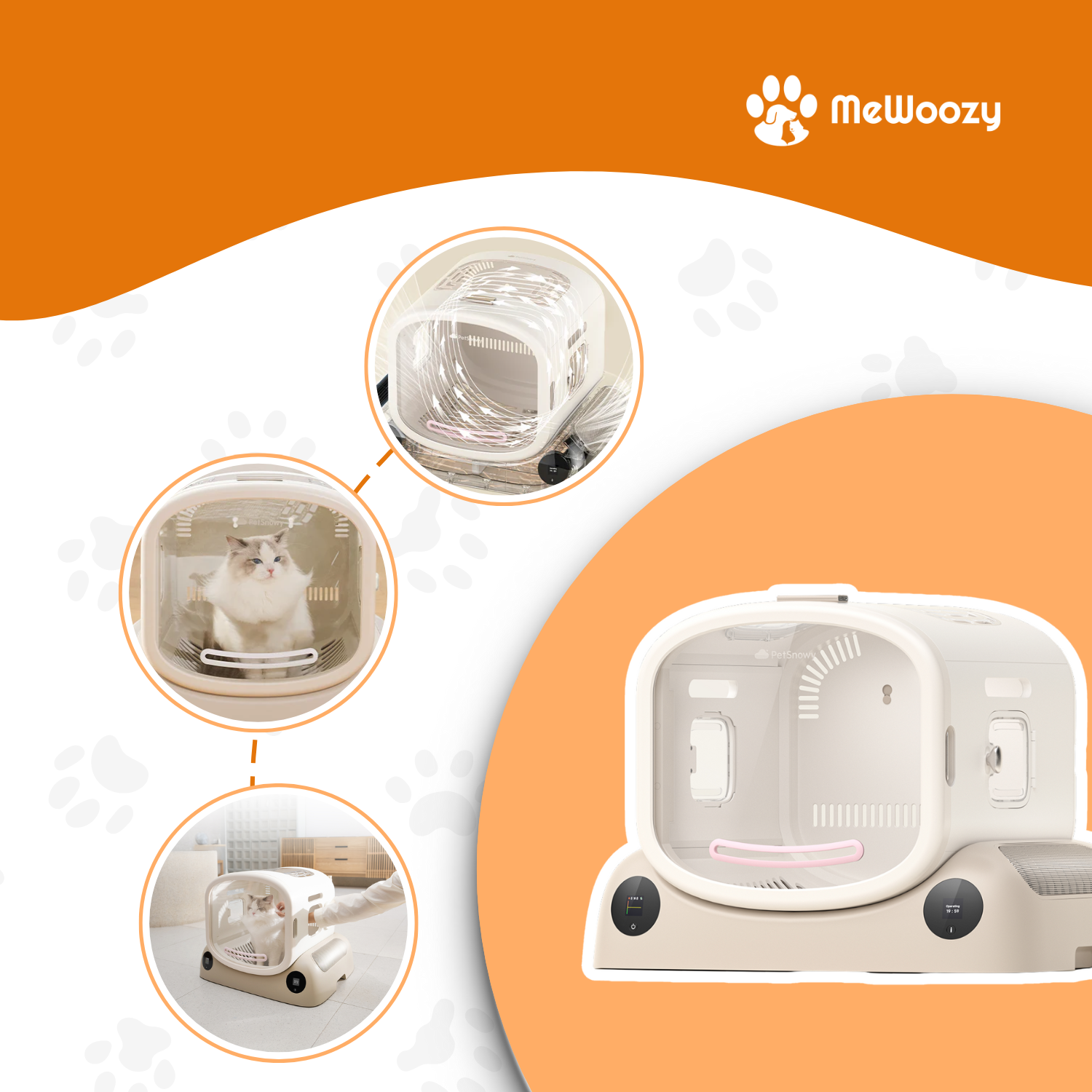 De box is veilig in gebruik dankzij de modulaire veiligheidsstructuur en beschikt over nauwkeurige temperatuurregeling die je kunt aanpassen aan de behoeften van je dier. De magnetische dubbele vouwdeur maakt het eenvoudig om je huisdier erin en eruit te laten, terwijl de speciale one-touch modus juist helpt om je dier te kalmeren.