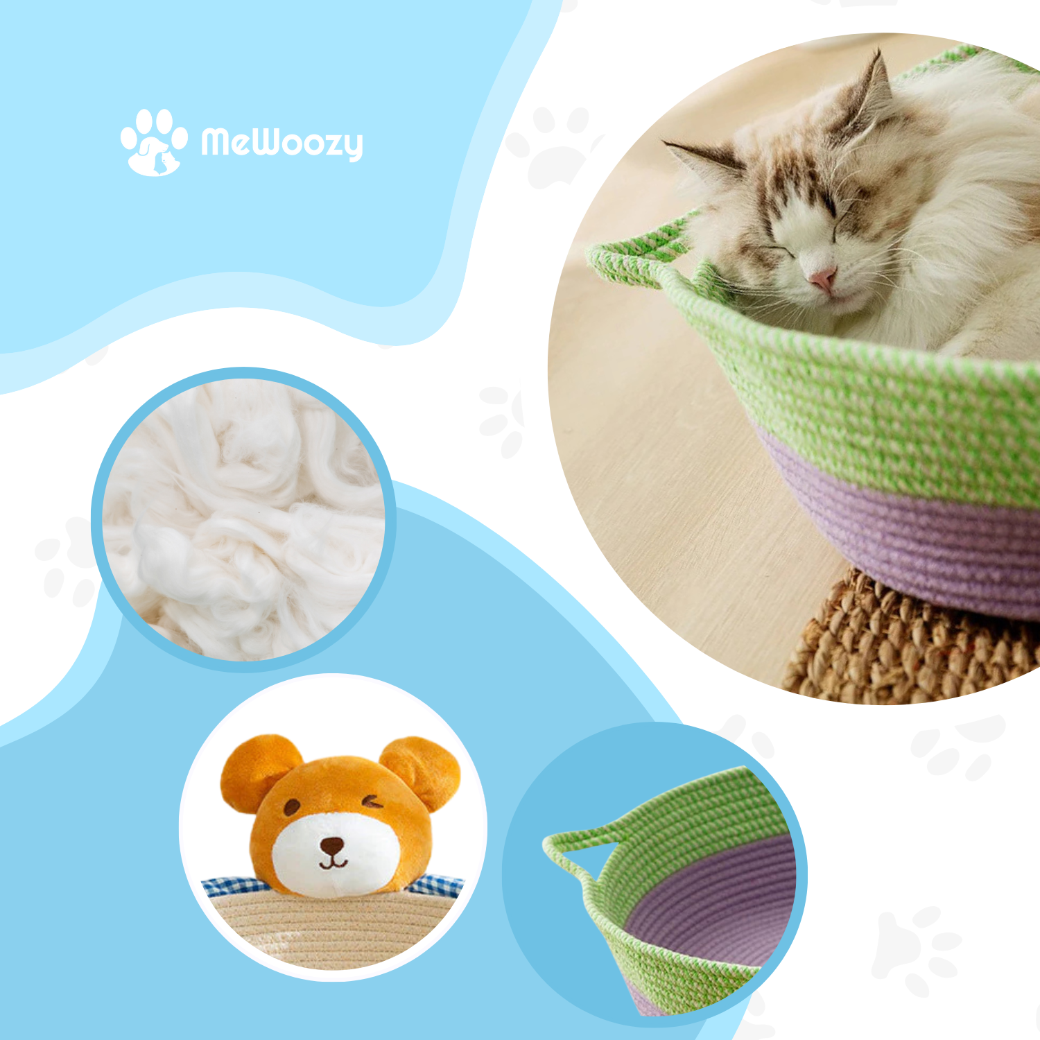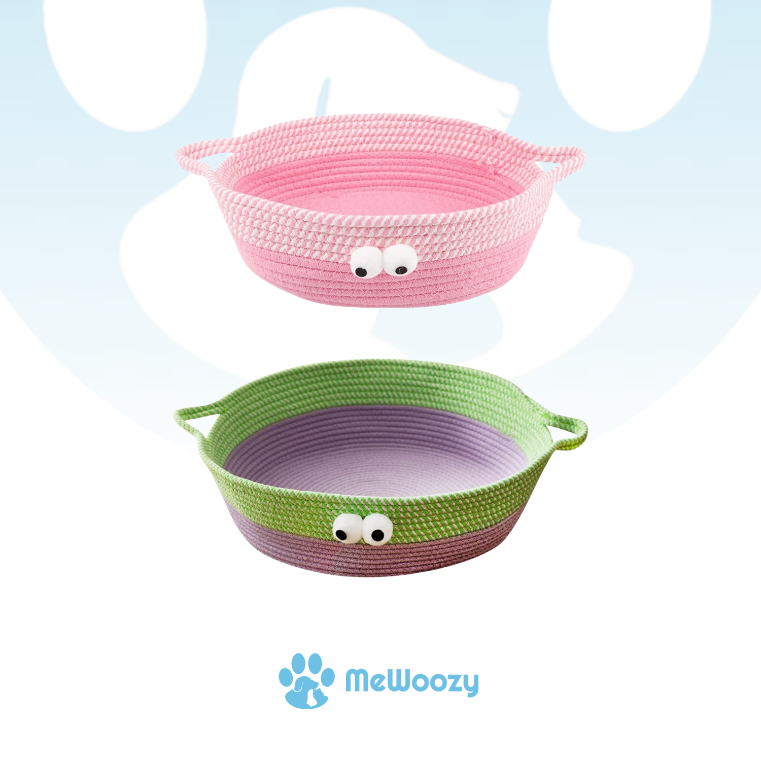 De Katoenen Kattenmand Dierdesign biedt jouw kat een comfortabele rustplek én past perfect in jouw interieur. Deze handgeweven kattenmand is gemaakt van 100% natuurlijk katoen en beschikt over een speels diermotief met grappige oogdetails. Het ademende ontwerp zorgt voor een prettige luchtcirculatie, wat de mand extra hygiënisch maakt – ook op warme dagen. Dankzij de handige handvatten verplaats je 'm eenvoudig van de woonkamer naar het balkon of een zonnige hoek in huis.
