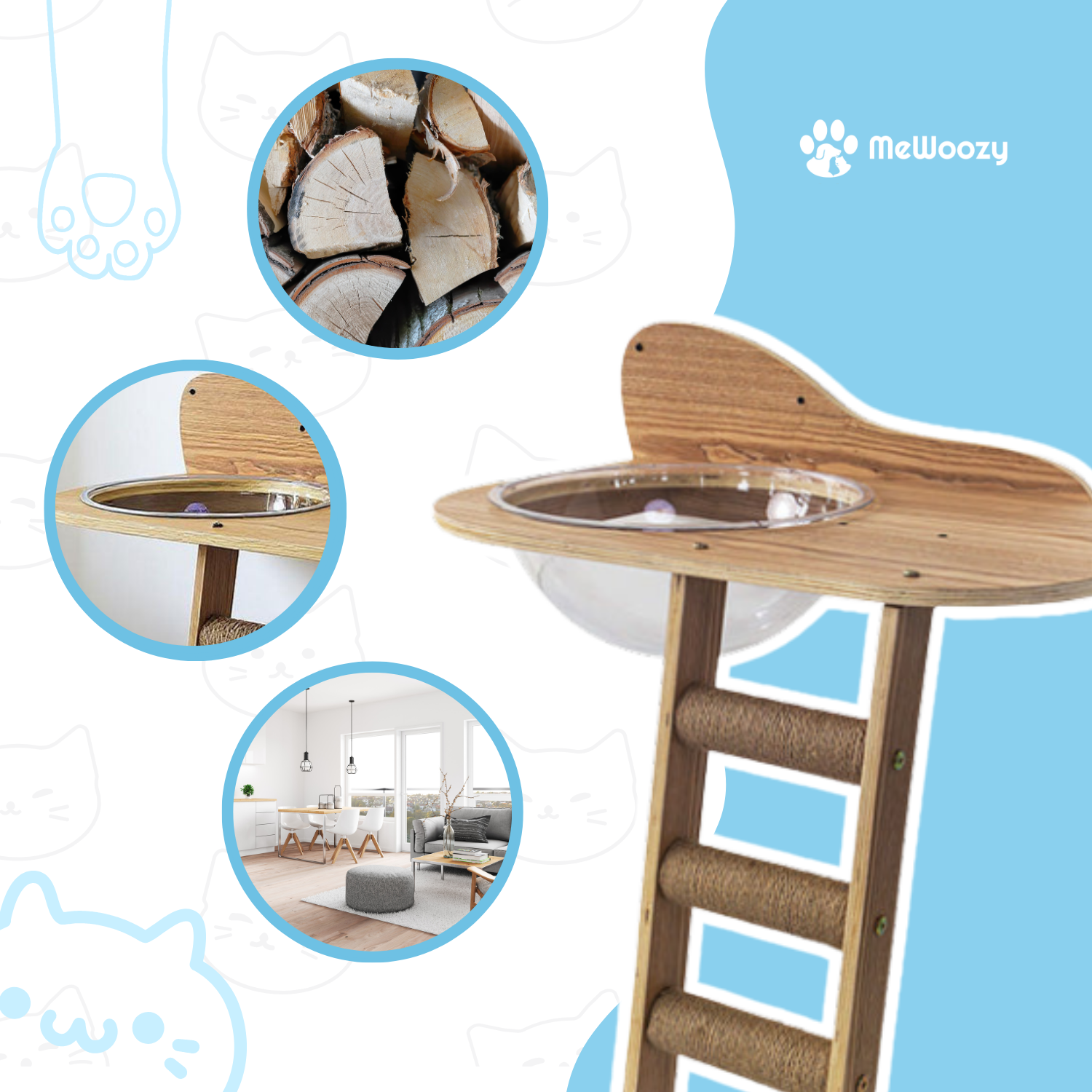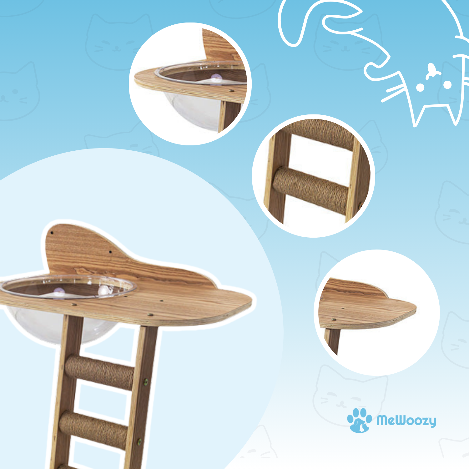De set bevat verschillende onderdelen zoals treden, wandplanken en een transparante bubbelhangmat waarin je kat heerlijk kan uitrusten én alles in de gaten houdt. Door de sterke constructie is het veilig voor dagelijks gebruik door actieve katten, en dankzij de slimme plaatsing komt ook jouw interieur tot rust.