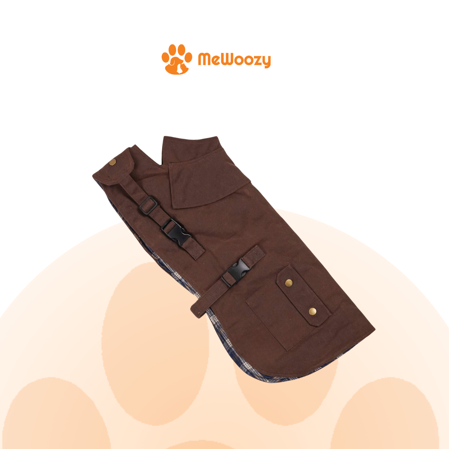 Met deze jas blijft je hond droog dankzij de waterdichte oilskin. Binnenin zorgt de flanellen voering voor extra warmte. De verstelbare clipriemen maken aankleden snel en zorgen dat alles goed blijft zitten, zonder gedoe.